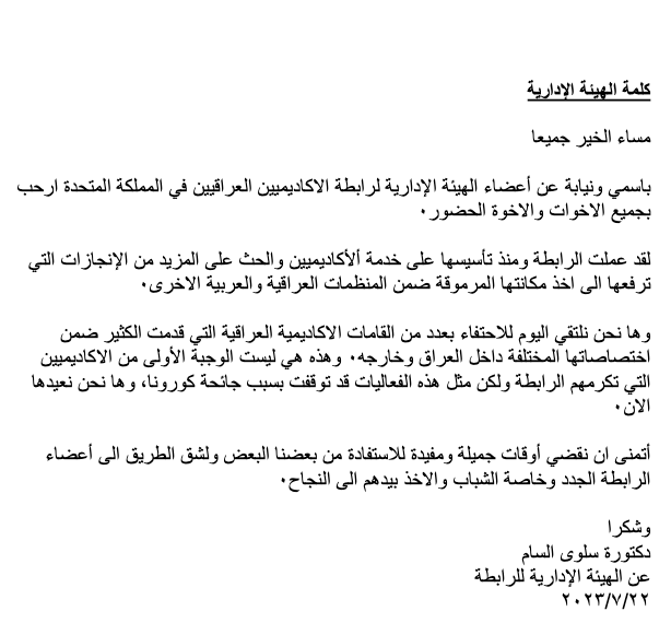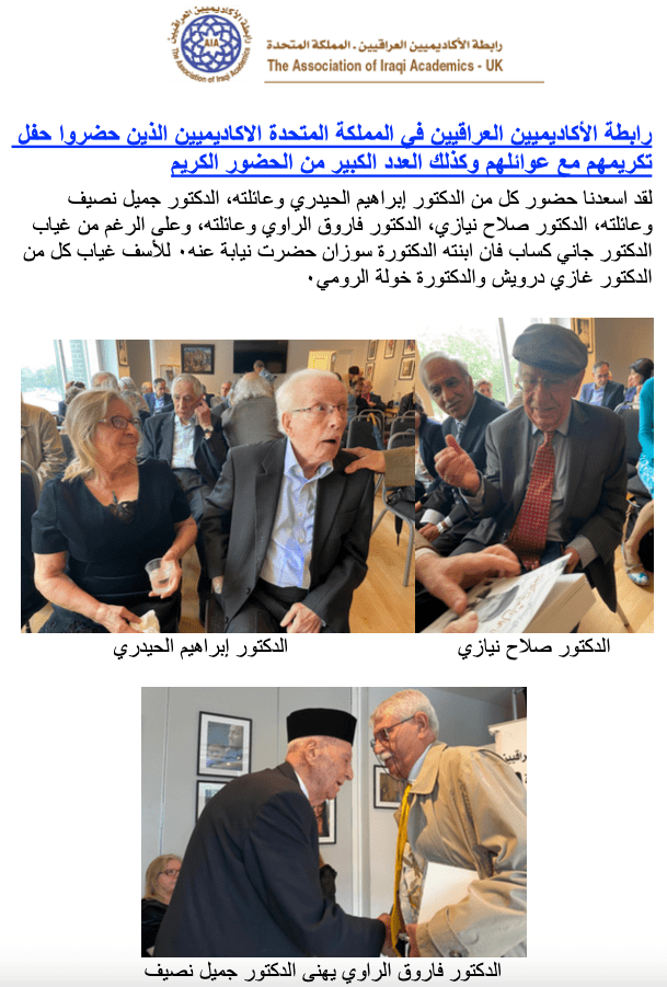 December 15, 2023December 15, 2023iraqiacademicsLeave a Comment on A ceremony honouring my group of academicians A ceremony honouring my group of academicians Share this: Click to share on X (Opens in new window) X Click to share on Facebook (Opens in new window) Facebook Click to share on WhatsApp (Opens in new window) WhatsApp Click to email a link to a friend (Opens in new window) Email Like Loading...