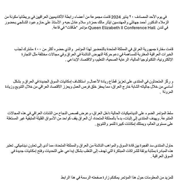In general, the event was successful and particularly informative for those who may not be familiar with or have limited connections to Iraq. I was impressed by the budding business acumen of the younger generation, witnessing their shift towards contemplating entrepreneurship instead of relying solely on public employment. It was rewarding to observe the establishment of connections, bridging our two homes.”